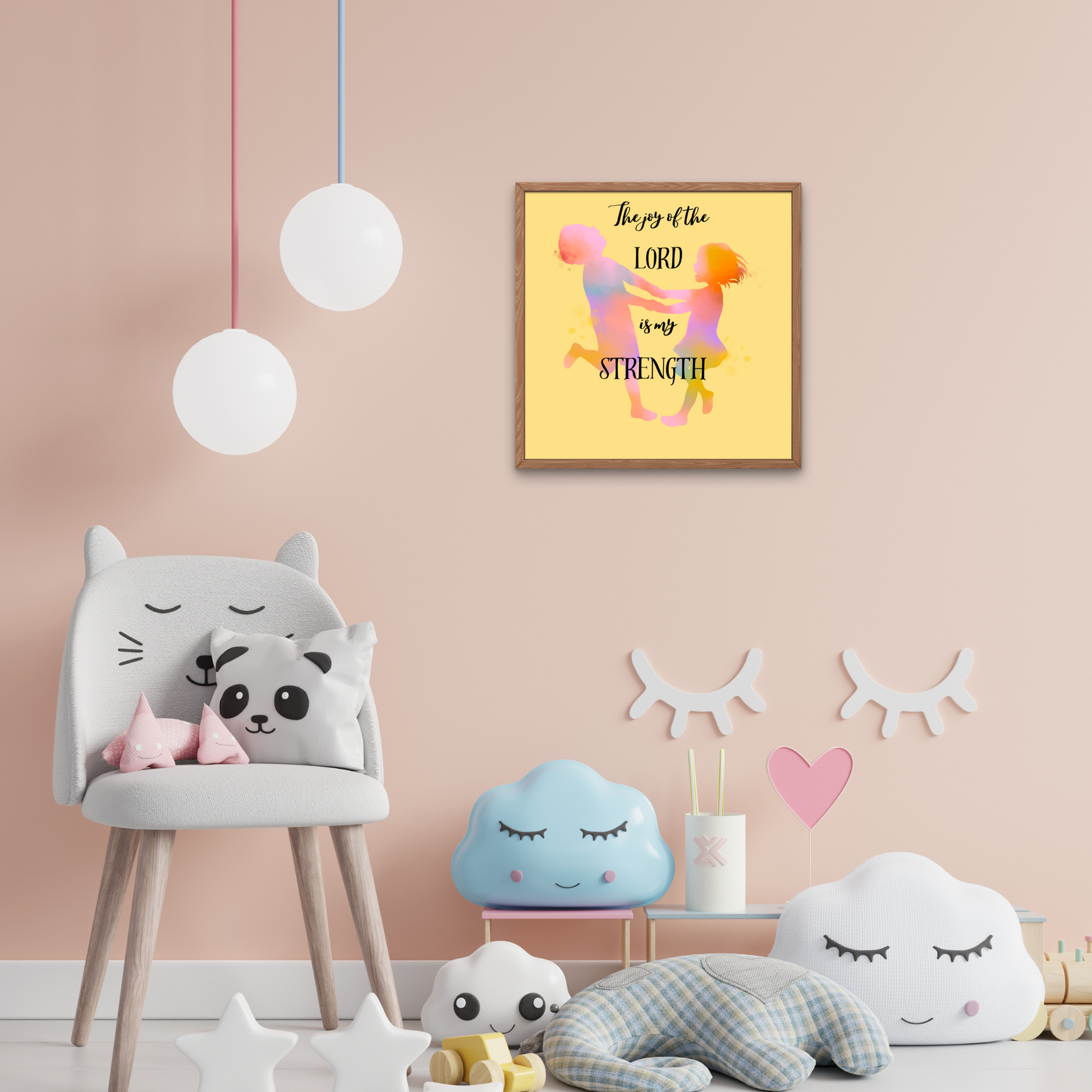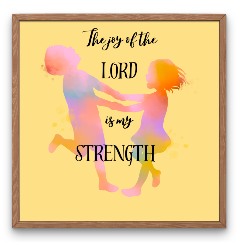 Cherish those tender childhood moments between siblings with this stunning watercolor silhouette print. Brighten up any room with the joy expressed in this scripture from Nehemiah 8:10, while acknowledging the great gift of children our Heavenly Father has blessed us with. This is a digital product, not a physical product. Great in a child's room or really in any room that you want to add color. These prints not only bring a beautiful picture to your home's décor, but also the Word of God. Makes perfect gifts as well!